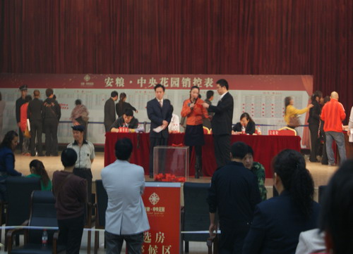2010年10月11日上午七時,安糧·中央花園在蕭縣鳳山國際大酒店大禮堂舉行了二次推盤活動。作為9月25日開盤的延續(xù),公司為本次開盤活動前期做了大量的研究和準備工作,并得到了地產(chǎn)公司領(lǐng)導(dǎo)的重視和關(guān)注。本次共推382套房源,從開盤當日情況來看,現(xiàn)場秩序井然,客戶選房熱情高漲,當日完成大定135套,與9月25日的136套結(jié)合,已完成銷售271套,去化率達70.9%。直至活動結(jié)束后,趕到現(xiàn)場選房的客戶仍然絡(luò)繹不絕。