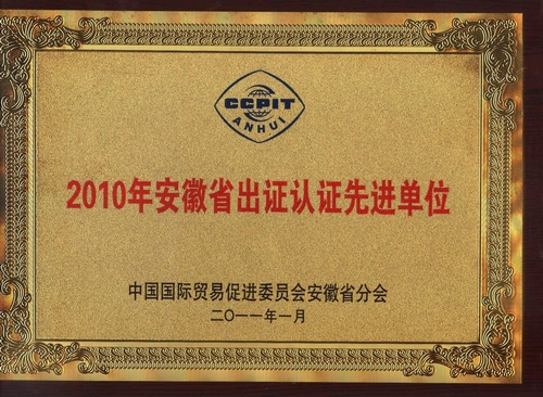 2月21日,中國國際貿易促進委員會安徽省分會授予安糧實業“2010年安徽省出證認證先進單位”稱號。這已經是安糧實業自成立起連續兩年獲此殊榮。