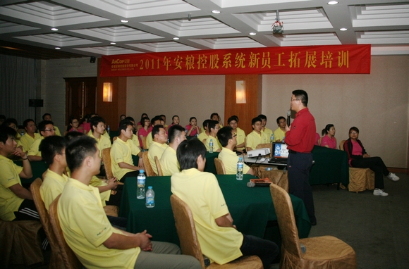 由公司辦公室(人力資源部)精心籌備組織的2011年安糧控股系統新員工文化導入暨拓展訓練活動于6月10日、11日在馬鞍山盛德軒國際會議中心順利舉行。本次活動參訓人員共計68人(其中63人參加拓展培訓),公司總法律顧問儲潔印、辦公室主任潘冬生與新員工一道參加了培訓。