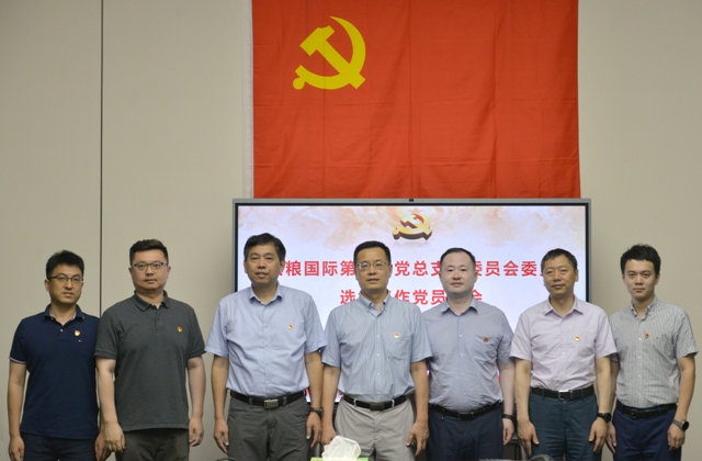 (集團(tuán)領(lǐng)導(dǎo)與安糧國際第一屆黨總支委員合影)